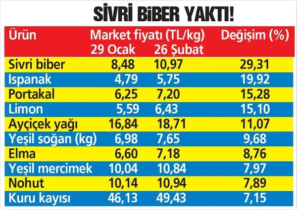 Şubat'ta markette 42 ürünün 29'unda fiyat artışı, 8'inde fiyat azalışı meydana geldiğini anlatan Bayraktar, şöyle konuştu: