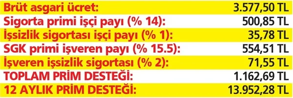 Yani işçi başına yıllık en az 13 bin 952 lira prim desteği sağlanacak.