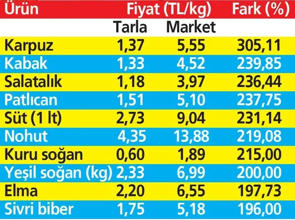 Gıdada üretici-market fiyat farkı kapanmak bilmiyor. Türkiye Ziraat Odaları Birliği (TZOB) Genel Başkanı Şemsi Bayraktar, Mayıs'ta 4 kata varan fark çıktığını söyledi.