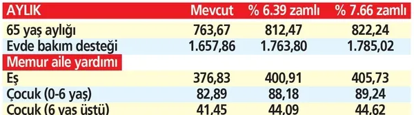 65 yaş aylığı 763,67 liradan 822,24 liraya çıkacak.