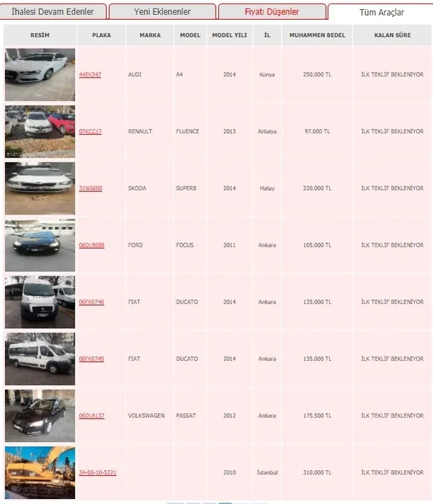 105 bin TL’ye otomobil satılıyor. İkinci el araba satın almak isteyenler için bankalar icralık araç satışı gerçekleştiriyorlar. Bu kapsamda Ziraat Bankası yeni araç satış listesini yayınladı. Yayınlanan listede Fıat, Skoda, Ford, Wolkswagen, Renault, Audi marka araçların çok ucuz fiyatlardan satışa çıktığı görüldü. Ziraat Bankası’ndan satılık araçlara erişmek için Ziraat Bankası Araçları bağlantısını inceleyebilir ve hızlı arama özelliği ile dilediğiniz özelliklere sahip taşıtları kolayca bulabilirsiniz. Sayfaya girdiğiniz anda sizi ihalesi devam eden, yeni eklenen, fiyatı düşen kategorilerinde araçlar karşılayacaktır.