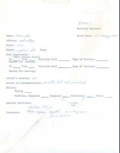 Apple'ın kurucusu Steve Jobs tarafından yazılmış 1973 tarihli bir iş başvurusu, hem fiziksel dünyada hem de dijital dünyada NFT olarak açık artırma ile satışa çıkarıldı. Jobs'un iş başvurusu, daha önce birkaç kez daha açık artırmaya çıkartıldı. Örneğin; 2017'de iş başvurusu 18 bin 750 dolara satıldı. 2018'de ise satın alma bedeli 174 bin 757 dolara çıktı. Geçtiğimiz Mart ayında ise 222 bin 400 dolara bir kez daha satın alındı. Böylece eser defalarca el değiştirdi.