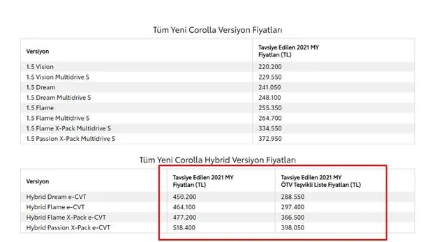 Toyota Corolla ÖTV indirimli fiyat listesi birçok kişi tarafından merak ediliyor. İşte karşınızda Toyota Eylül ayı indirimli fiyat listesi: