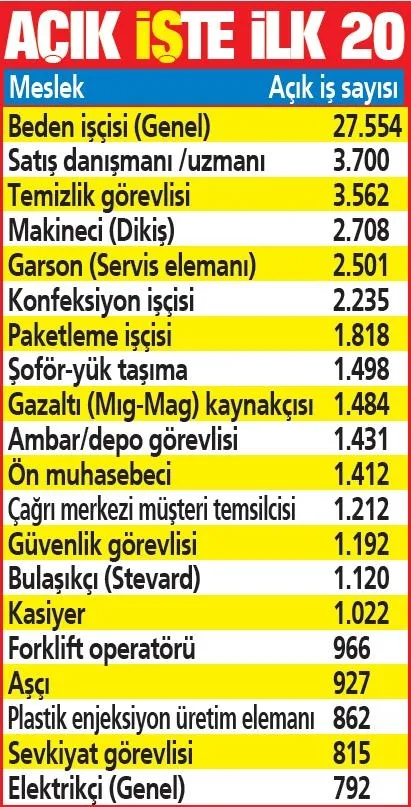 İş arayanlar bu habere çok sevinecek... İŞKUR 1 Ocak-15 Ekim arasında 1 milyon 36 bin kişinin işe yerleştirilmesine aracılık etti. Halen 119 bin açık iş pozisyonu için personel aranıyor.