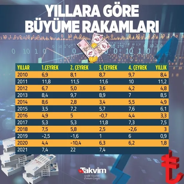 Türkiye ekonomisinin 2010 yılından bu yana büyüme hızı yıllar ve çeyrekler itibarıyla şöyle: