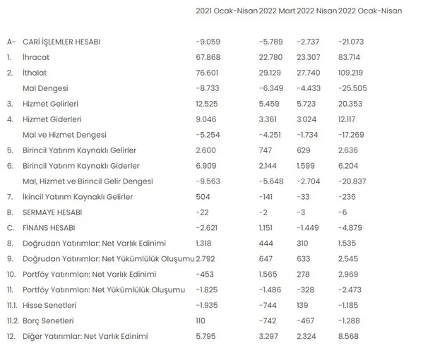 TCMB tarafından Nisan 2022 dönemine ilişkin ödemeler dengesi verileri açıklandı.