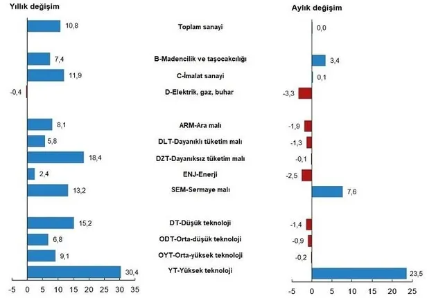 SANAYİ ÜRETİMİNDE AYLIK VERİLER