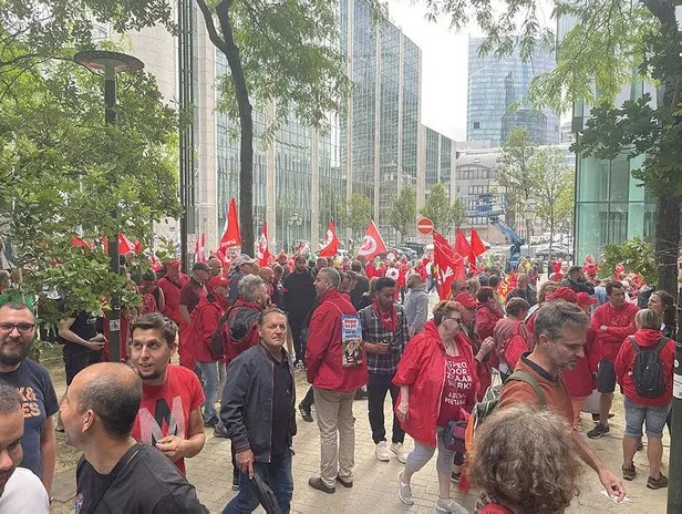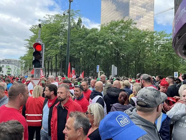 Belçika'daki en büyük işçi sendikalarının çağrısı üzerine protestocular Brüksel Kuzey Tren İstasyonu önünde buluştu.