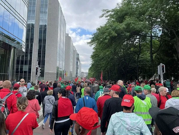 Belçika'nın başkenti Brüksel'de yaklaşık 80 bin kişi hayat pahalılığını ve ücretlerin yeterince artırılmamasını protesto etti.
