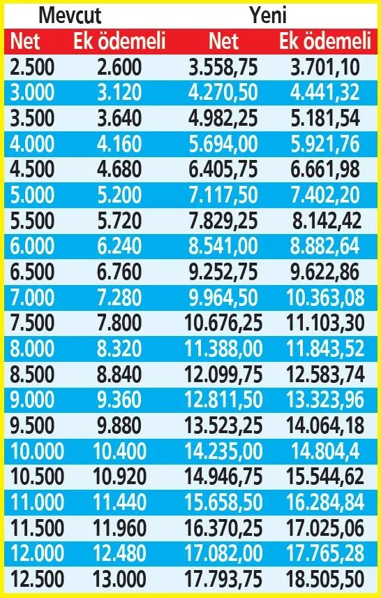 Maaşlara yüzde 42.35 zam yansıtılırken, ek ödeme dahil en düşük emekli aylığı ödemesi 3 bin 500 liraya yükseldi. Maaşlar yüzde 42.35 zamlı olarak hesaplanacak, 3 bin 500 liranın altında kalan maaşlar 3 bin 500 liraya tamamlanarak ödenecek.