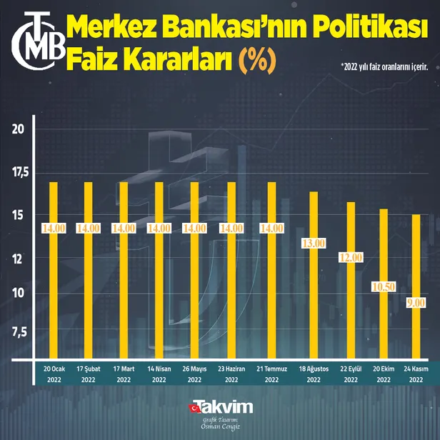 Kurulun, sürdürülebilir fiyat istikrarı ve finansal istikrarın güçlendirilmesi için atılan ve kararlılıkla uygulanan adımlar ile birlikte, küresel barış ortamının yeniden tesis edilmesiyle dezenflasyonist sürecin başlayacağını öngördüğü belirtilen duyuruda, "Azalan dış talebin toplam talep koşulları ve üretim üzerindeki etkileri yakından izlenmektedir. Küresel büyümeye yönelik belirsizliklerin ve jeopolitik risklerin daha da arttığı bir dönemde sanayi üretiminde yakalanan ivmenin ve istihdamdaki artış trendinin sürdürülmesi ile arz ve yatırım kapasitesindeki yapısal kazanımların sürekliliği açısından finansal koşulların destekleyici olması kritik önem arz etmektedir." ifadeleri kullanıldı.