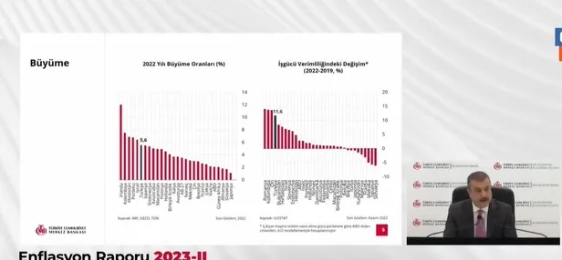 "Biz enflasyon tahminlerimizi sabit tutarken enerji ve emtia fiyatlarının daha olumlu geleceğini varsaydık. Bu anlamla ithalat fiyatı tahminlerimizi düşürdük. Bunun dışında enerji fiyatlarında hem küresel hem de artan yerel etkilerin olumlu yansıyacağını düşünüyoruz. Küresel gıda fiyatlarındaki düşüşe paralel bizim gıda fiyatlarımızın da küresel fiyatlara yakın takip edeceğini öngörüyoruz. Yeni hasat döneminden güzel haberler alıyoruz. Bunlar da fiyatlarımızı olumlu etkileyecek. Para politikasına da destekleyici adımlarımız devam edecek. Dolayısıyla yıl sonu enflasyon tahminimizin arkasındayız."