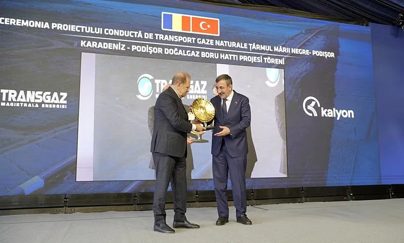 İki ülke arasındaki ilişkilerin daha da geliştirmek için çalışmaların devam edeceğini söyledi. Konuşmaların ardından Kalyon Holding Yönetim Kurulu Başkanı Cemal Kalyoncu tarafından törene katılan Cumhurbaşkanı Yardımcısı Cevdet Yılmaz'a, Romanya Başbakan Yardımcısı Marian Neacşu ve SNTGN Transgaz Genel Müdürü Sterian'a plaket takdim etti. Ardından katılımcılar hep birlikte butonların başına geçti. Cumhurbaşkanı Yardımcısı Cevdet Yılmaz butona basmadan önce projenin tüm paydaşlar için hayırlı olmasını dilediğini ifade ederek butona basarak boru indirme işlemini başlattı.