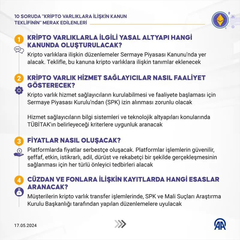 Derlenen bilgilere göre, kripto varlıklara ilişkin kanun teklifiyle ilgili 10 soru ve yanıtları şöyle: