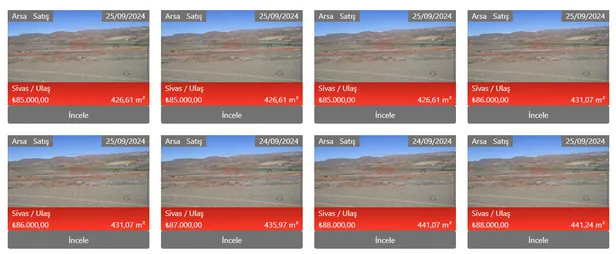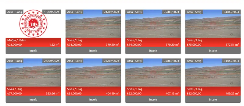 Milli Emlak, Türkiye genelinde birçok ilde arsa satışına başladı. Başta Sivas ve Muğla olmak üzere birçok şehirdeki arsalar ilana çıktı. Muğla'nın Milas ilçesinde 1.32 m² büyüklüğündeki bir arsa 21.000 TL gibi düşük bir bedelle satışa sunulurken, Sivas'ın Ulaş ilçesinde 370 m² ile 441 m² arasında değişen büyüklükteki arsalar 74.000 TL'den başlayarak 88.000 TL'ye kadar yükselen fiyatlarla alıcılarını bekliyor.