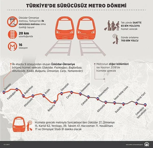 Üsküdar-Ümraniye-Çekmeköy-Sancaktepe metrosunun diğer kısımları ise 2018'in Haziran ayında hizmet vermeye başlayacak.
