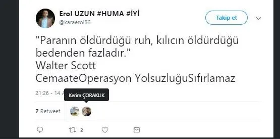15 Temmuz Darbesi'nden önce seri şekilde FETÖ hastaglerine destek veren belki de organize eden Kerim Çoraklık bugün de Meral Akşener için hashtag çalışmaları yapıyor.