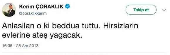 Akşener'in sosyal medya sorumlusu Kerim Çoraklık'ın 17/25 Aralık FETÖ kumpası sırasında 25 Aralık'ta FETÖ'ye destek verdiği paylaşımlar.