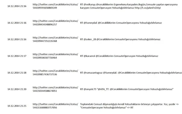 İŞTE ÇORAKLIK'IN FETÖ'YE DESTEK İÇİN YAPTIĞI RETWEETLER