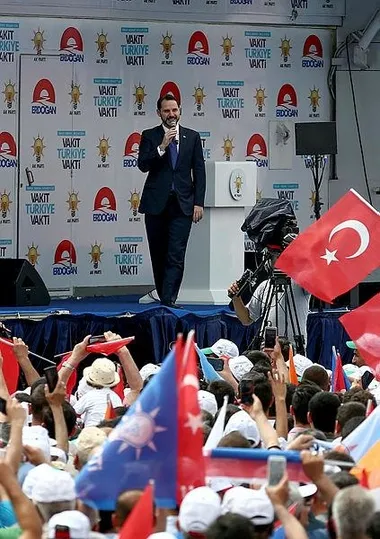 Enerji ve Tabii Kaynaklar Bakanı Berat Albayrak, "Ana muhalefet, FETÖ ile PKK'yla mücadele eden paşalarımızın apoletini sökeceğini ifade etti. Türkiye olarak biz, 40 yıldır bugünler için, bu ülkeyi yıkmak ve bölmek için dış malum güçler tarafından yetiştirilen, bugünlere hazırlanan iki terör örgütüne karşı bu savaşı ve mücadeleyi verirken, 24 Haziran noktasında kim kimle iş tutuyor bunu görüyoruz." dedi.