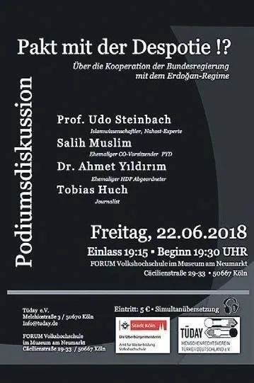 PYD/YPG'NIN kırmızı bültenle aranan eski eş başkanı Salih Müslüm'ün, 24 Haziran seçimlerinden iki gün önce video konferansla katılarak konuşacağı konferansa Köln Büyükşehir Belediyesi'nin resmi destek vermişti. Köln Belediyesi, söz konusu konferansa sponsor da olmuştu.