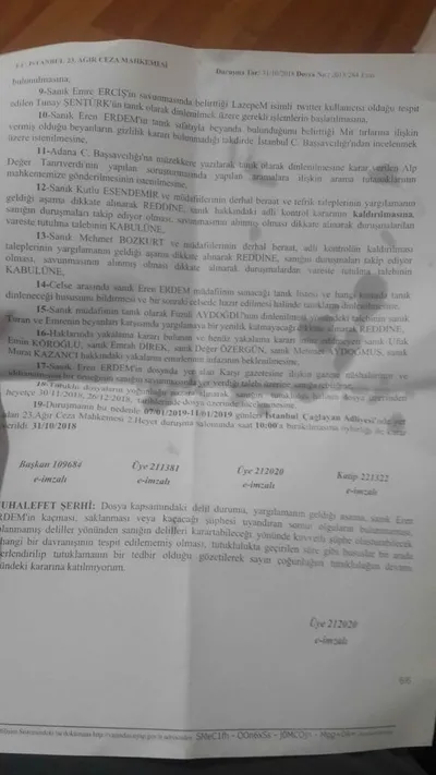 SANIK EMRE ERCİŞ'İN BEYANLARI EREN ERDEM'İN KUVVETLİ SUÇ İŞLEDİĞİNİN DELİLİ SAYILDI