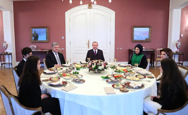 Görüşmede Cumhurbaşkanı Erdoğan'ın eşi Emine Erdoğan ve Poroşenko'nun eşi Marina Poroşenko da bulundu.