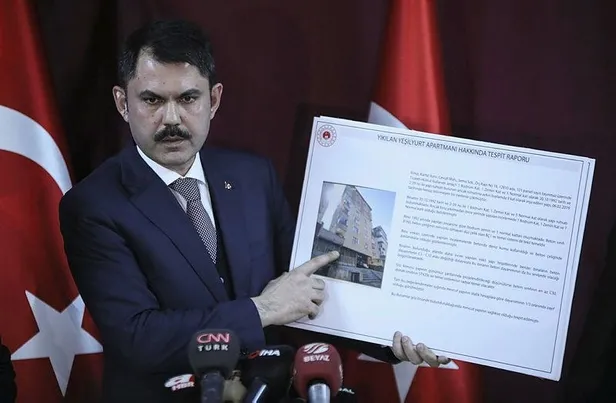 Bakan Kurum, Kartal'da çöken binaya ilişkin, "Yıkılan binanın etrafındaki 10 apartmanımızda risk analizi yaptık. Bu analiz çerçevesinde 8 bina riskli. Bu 8 binanın hak sahipleri ile az önce görüştük. Bu binaları da süreç içerisinde yıkacağımızı ve alanının tamamında bir kentsel dönüşüm projesi yapacağımızı kendilerine ilettik. Bu süreçte Bakanlık olarak hem kira desteği hem de yapımla alakalı Bakanlığımıza bağlı TOKİ eliyle süreci yürüteceğiz." ifadelerini kullandı.