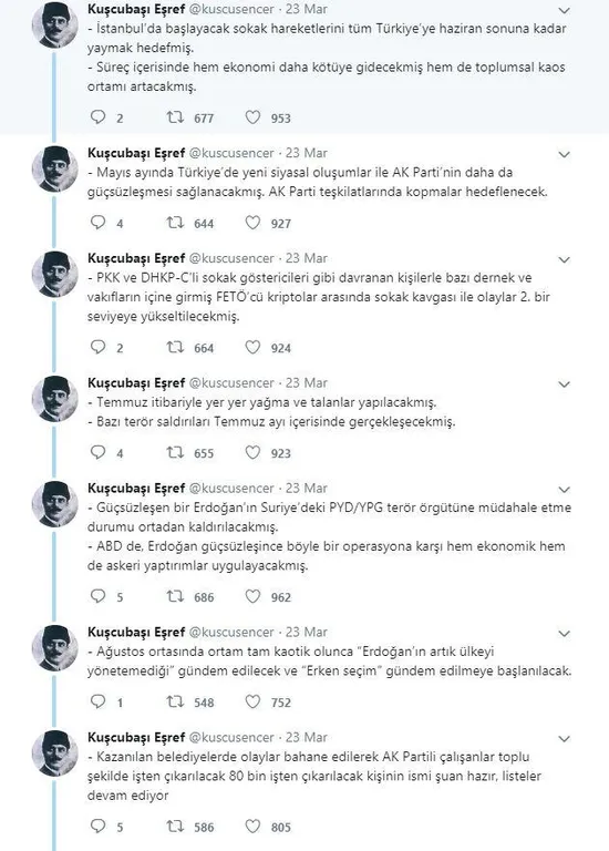 - PKK ve DHKP-C'li sokak göstericileri gibi davranan kişilerle bazı dernek ve vakıfların içine girmiş FETÖ'cü kriptolar arasında sokak kavgası ile olaylar 2. bir seviyeye yükseltilecekmiş.