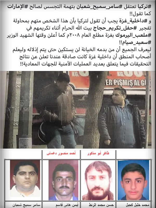 Birleşik Arap Emirlikleri (BAE) için çalıştığı iddiasıyla gözaltına alındıktan sonra, çıkarıldıkları İstanbul Nöbetçi Sulh Ceza Hakimliği Mahkemesi'nde "askeri, siyasi ve uluslararası casusluk" suçlarından tutuklanan iki kişiden bir olan Semir Şaban isimli kişinin; 2008 yılında Gazze'de Hamas hükümeti tarafından Muhammed Dahlan adına casusluk yaptıkları gerekçesiyle tutuklanan dört kişiden biri olduğu bildirildi. Semir Şaban adlı kişi, Gazze'de Hacca gitmek üzere hazırlık yapan hacıların otobüslerine bombalı eylem yapmak üzereyken yakalandığı bildirildi.
