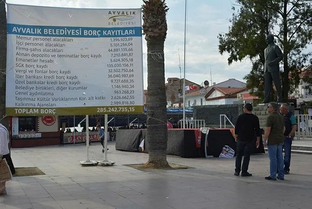 Balıkesir Ayvalık Belediye Başkanı Mesut Ergin, CHP’den yaklaşık 300 milyon liralık enkaz devraldı. 31 Mart yerel seçimlerini kazanan Demokrat Partili Ergin, CHP’den devraldığı Ayvalık Belediyesi’nin içinde bulunduğu 285 milyon 242 bin liralık borç tablosunu ilçe merkezine astığı dev pankartla halkın bilgisine sundu.