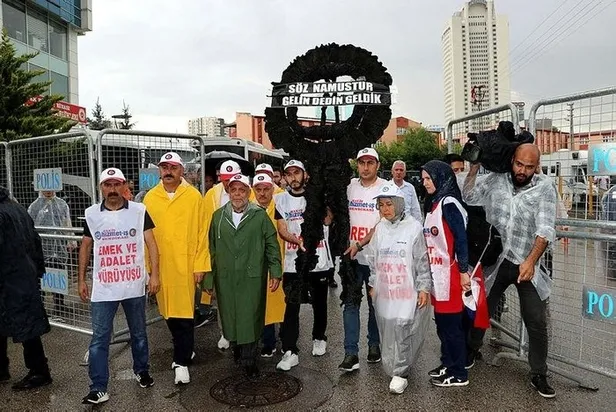CHP Genel Merkezi önünde toplanan kalabalığa seslenen Hak-İş Başkanı Mahmut Arslan, yerel seçimlerin ardından CHP ve HDP'li belediye başkanlarının mazbatalarını alır almaz işçileri işlerinden çıkardığını söyleyerek, şöyle konuştu: "Sayın Kemal Kılıçdaroğlu ile kişisel hiçbir sorunumuz olamaz. Görüşürüz, konuşuruz, gerektiğinde oturur, tartışırız. Kendisinin sözünü yerine getirmesini istiyoruz. Namus sözü verdi. Dedi ki, 'bütün bunlara rağmen eğer bir sorun yaşarsınız, bir sıkıntınız olursa bana gelin, beni bulun' dedi. Sayın Kılıçdaroğlu çağırdı ve biz de geldik."