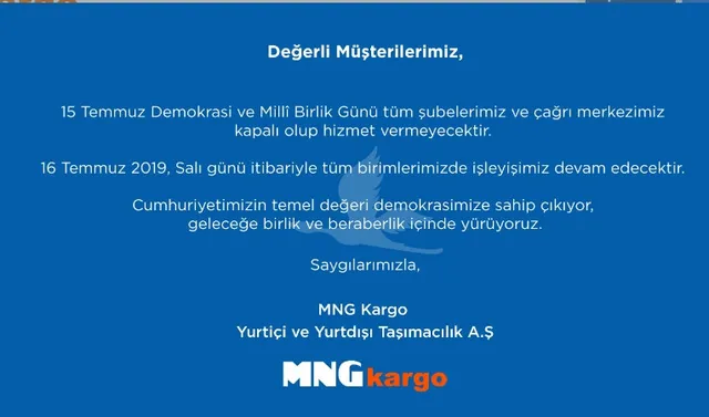 MNG Kargo da tatil olduğunu resmi internet sayfasında paylaştı.