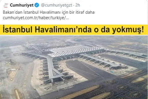Hizmet düşmanı yayın organlarının İstanbul Havalimanı hazımsızlığı sürüyor. Dün birçok yayın organı Bakan Turhan'ın bir soru önergesine verdiği yanıttaki ifadelerini çarpıtarak "Bakan'dan havalimanı itirafı" şeklinde haber yaptı.