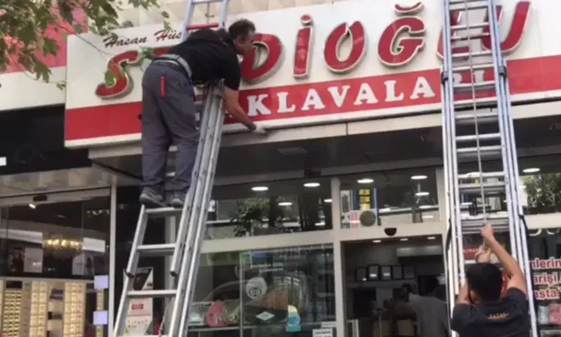 Seydioğlu Baklavaları’nın tabelaları indiriliyor...