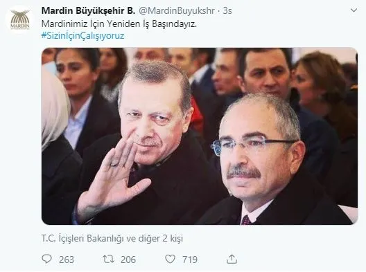 Mardin Valiliği'nin Twitter hesabından yapılan açıklamada, "Mardinimiz İçin Yeniden İş Başındayız" denildi.