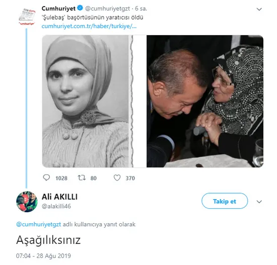 Gazetenin attığı " 'Şulebaş' başörtüsünün yaratıcısı öldü" başlığı büyük tepki çekti.