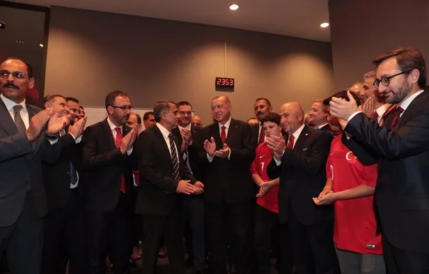 Vodafone Park'ta Türkiye-Andorra maçını izleyen Türkiye Cumhurbaşkanı Recep Tayyip Erdoğan, karşılaşmanın ardından millileri kutladı.