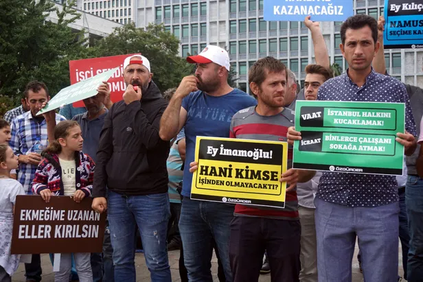 İstanbul Büyükşehir Belediyesi’ne (İBB) bağlı şirketlerden işten çıkartılan işçilerin Saraçhane'deki belediye binası önünde başlattığı eylem 18'inci gününe girdi. İşlerinden çıkarılan işçiler, sık sık "söz namustur”, zulme karşı omuz omuza”, “İşçiler burada, namus sözü nerede” şeklinde sloganlar atttılar.