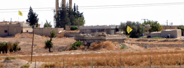 Başkan Erdoğan'ın operasyon sinyali sonrası korkuya kapılan PKK/YPG'nin sınırdaki son oyunu görüntülendi. PKK/YPG, Suriye'nin Telabyad kentinin Türkiye sınırına yakın noktalarındaki bazı mevzilerine, omurgasını oluşturarak kendilerini kamufle etmeye çalıştıkları Suriye Demokratik Güçleri (SDG) isimli yapıya ait bez parçalarını asmaya başladı.
