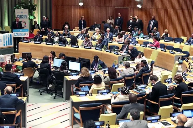 Birleşmiş Milletler (BM) 74. Genel Kurulu görüşmelerine katılmak üzere New York'ta bulunan Erdoğan, BM'deki programları çerçevesinde, Sürdürülebilir Kalkınma Amaçları Zirvesi kapsamındaki "Sürdürülebilir Kalkınma Hedeflerinin Hayata Geçirilmesini Etkileyen Mega Eğilimler" konulu liderler diyaloğu oturumunda konuştu.