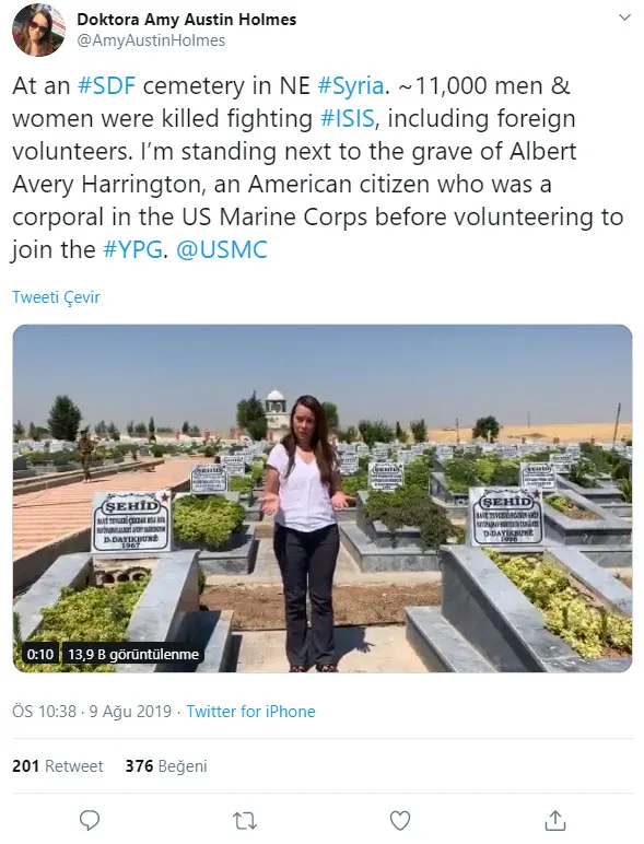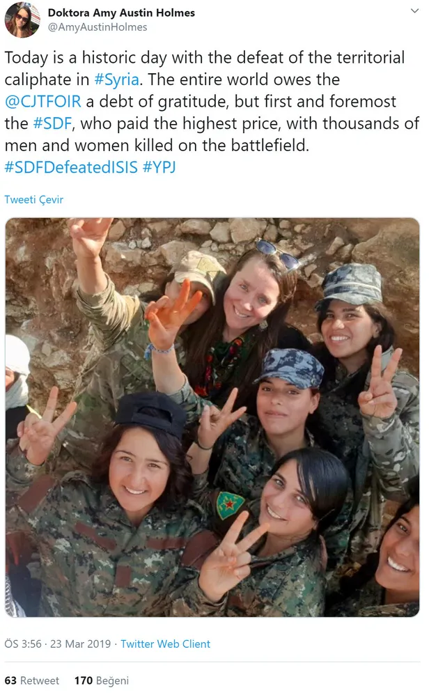Holmes'in sosyal medya hesabı, terör örgütü PYD saflarındaki teröristlerle verdiği pozlarla dolu.