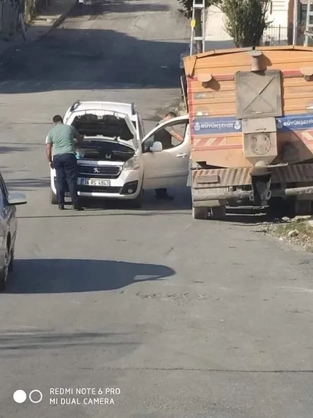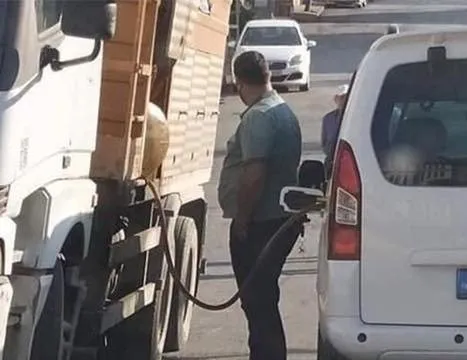 Belediye'nin yani vatandaşın parasıyla hizmet araçlarına alınan yakıtı şahsi araçlarına çeken şahıslar aracın kapılarını da açıp hortumu kamufle etmeye çalıştılar.