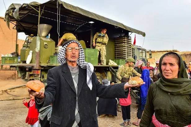 "Barış Pınarı Harekâtı ile terörün izleri silinirken Rasulayn'da hayatın normale dönmesi için çalışmalar devam ediyor. Pek çok noktada sağlık taraması yapan, insani yardımlara erişimi sağlayan Kahraman Mehmetçiğimiz, günlük olarak yaptıkları ekmekleri Suriyeli kardeşlerimizle paylaşıyor.