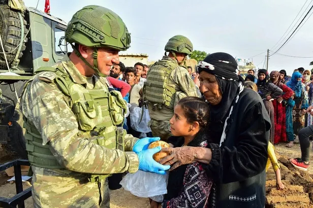 Bu kapsamda Rasulayn'da Cantemir Garbi ve Es Safeh köylerinde hem ihtiyaç sahiplerine yardımlar dağıtıldı hem de hastalara sağlık taraması yapılarak tedavi hizmeti verildi. Mehmetçiğimiz Suriyeli kardeşlerimizin terör baskısı olmadan kendi topraklarında güven içinde yaşayabilmeleri için çalışırken terör mağduru çocukları da unutmadı. Çocuklarla birlikte vakit geçiren askerlerimiz, küçük hediyelerle çocukların yüzlerini güldürmeye çalıştı."