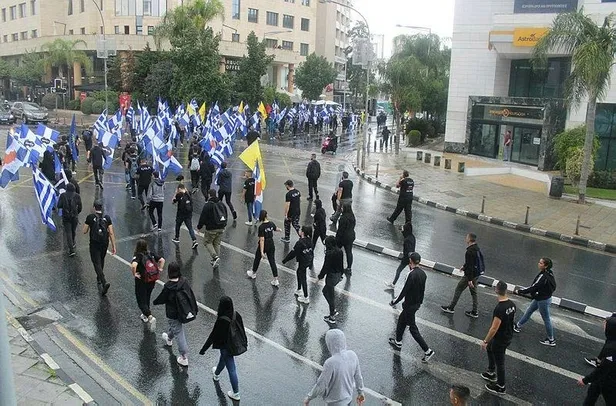 Güney Lefkoşa'daki Ledra Caddesi'nde toplanan Rumlar, Türkler aleyhine slogan atarak eylem yaptı. Yunan bayrakları taşınan eyleme Türklere karşı ırkçı eylemleriyle öne çıkan ELAM da destek verdi.