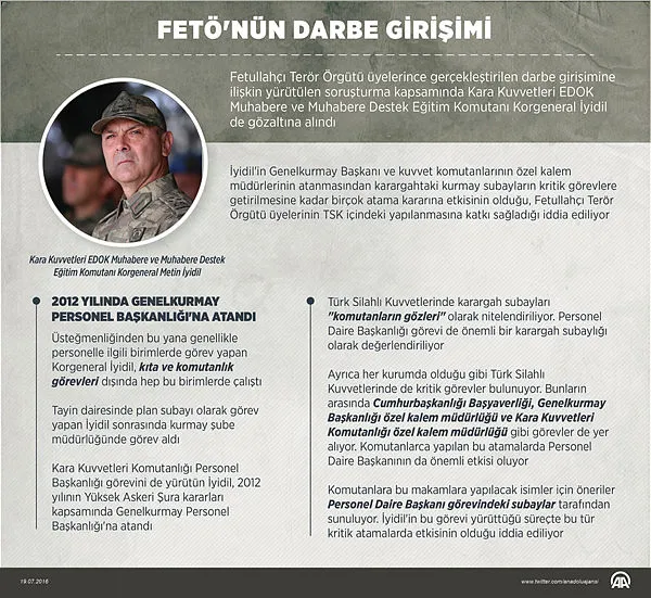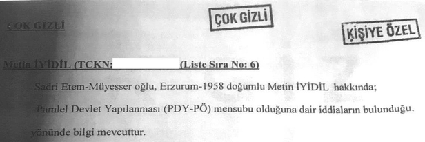 Skandal bir kararla tahliye edildikten hemen sonra tekrar tutuklanan eski Korgeneral Metin İyidil hakkında MİT belgelerine ulaşıldı. 23 Haziran 2015 tarihli belgelerde “Paralel Devlet Yapılanması (PDY-PÖ) mensubu olduğuna dair iddiaların bulunduğu yönünde bilgi mevcuttur” ifadeleri yer alıyor.