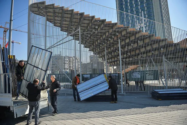 Öğleden sonra Taksim Meydanı'na gelen İBB ekipleri önce serginin çevresini bariyerlerle kapattı. Ardından ise sergi platformunun söküm işlemleri başladı.
