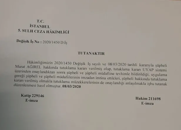 MURAT AĞIREL HAKKINDAKİ TUTUKLAMA KARARI 10 SAYFADAN OLUŞUYOR