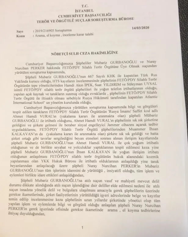 Gurbanoğlu'nun, FETÖ'nün hukuk alanındaki kozmik yapılanması olan Yüksel- Karkın-Küçük (YKK) avukatlık bürosuyla irtibatlı olduğu anlaşıldı. Soruşturma kapsamında şirket yöneticisi Nuray Nurcihan Perker'in, Gurbanoğlu'nun tüm işlerinin idaresini de yürüttüğü ve insiyatifi olduğu, tüm işlem ve eylemleri birlikte idare ettiklerinin anlaşıldığı tespit edildi.